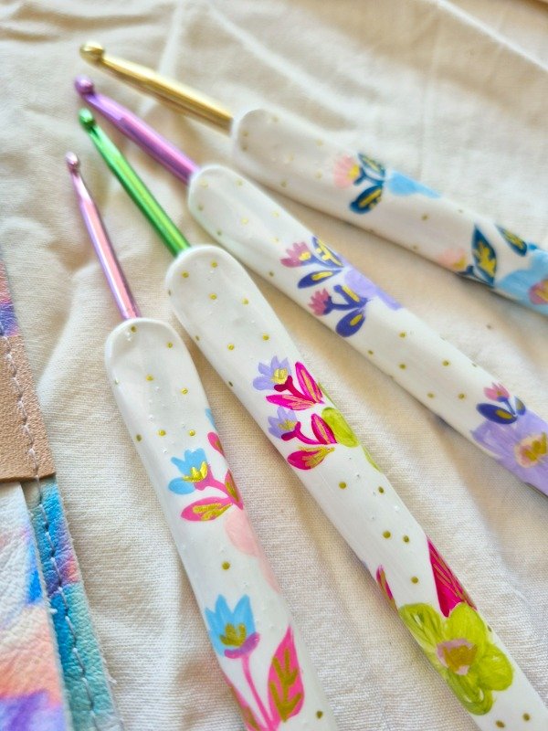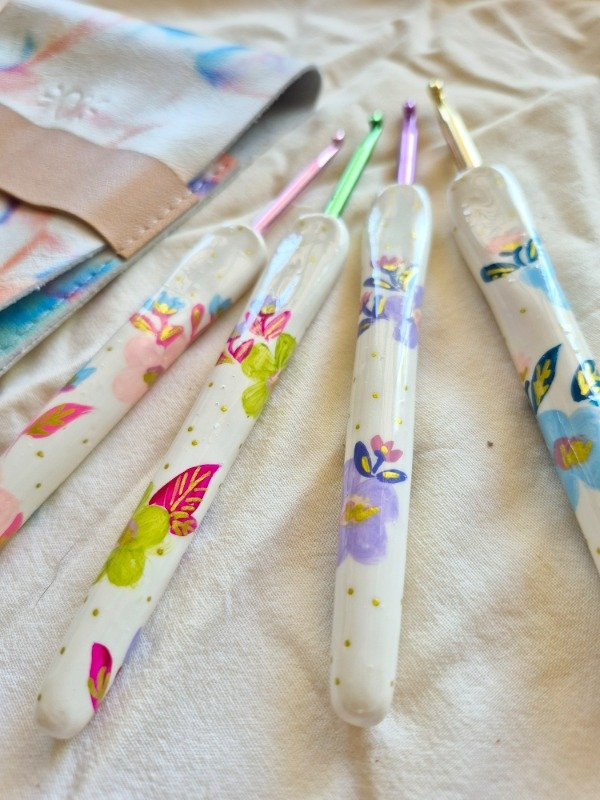Cada varita tiene mango amasado y pintado a mano, liviana, suave al tacto y muy cómoda para tejer durante horas sin cansarte.