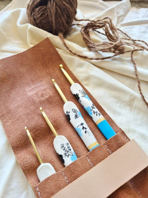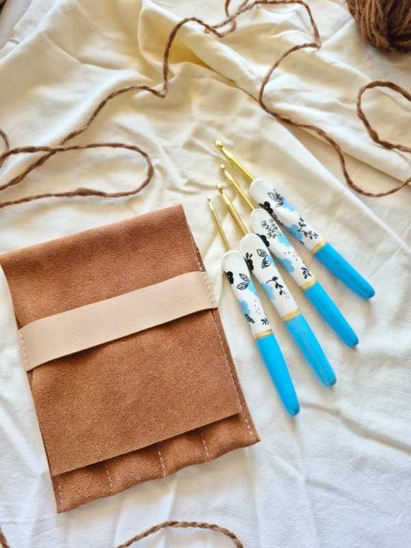 Este kit reúne 4 varitas de crochet únicas, hechas y elegidas especialmente para combinar con su estuche.
