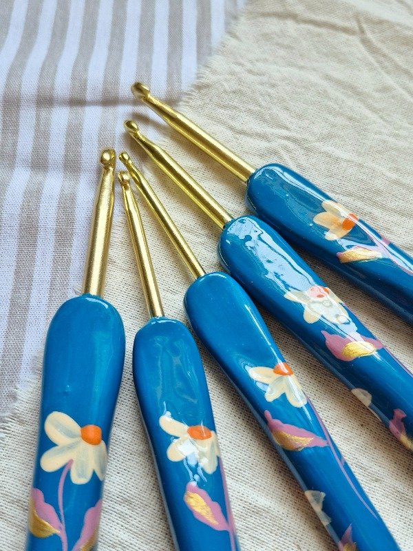 Cada aguja es única, amasada y pintada a mano con amor, y protegida con el mejor barniz súper brillante y resistente. ¡Una compañera fiel para todos tus proyectos!