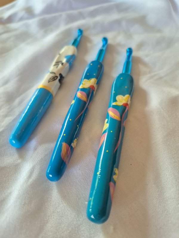 Cada aguja es única, amasada y pintada a mano con amor, y protegida con el mejor barniz súper brillante y resistente. ¡Una compañera fiel para todos tus proyectos!