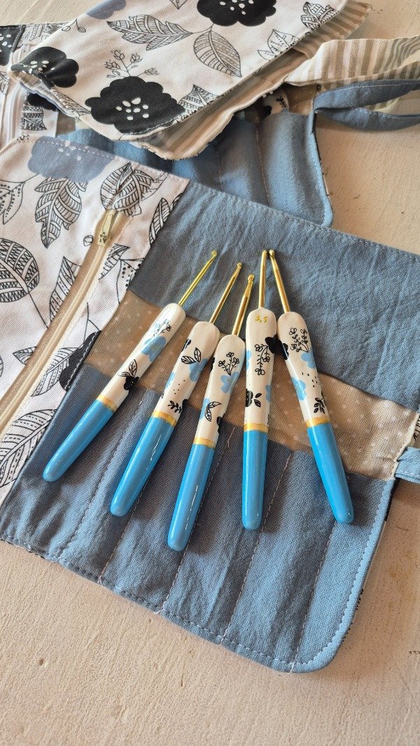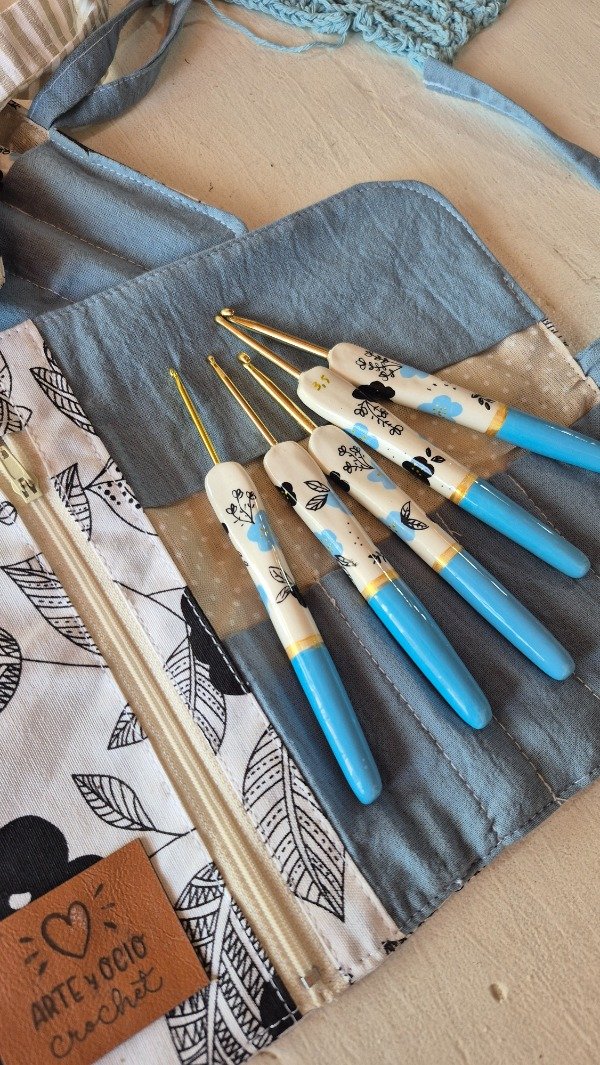 Este exclusivo set incluye 6 o 5 varitas de crochet con mango amasado y pintado a mano.