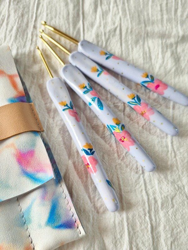 Este kit reúne 4 varitas de crochet únicas, hechas y elegidas especialmente para combinar con su estuche.