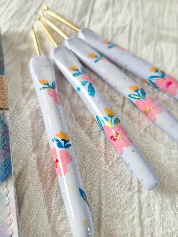 Cada varita tiene mango amasado y pintado a mano, liviana, suave al tacto y muy cómoda para tejer durante horas sin cansarte.