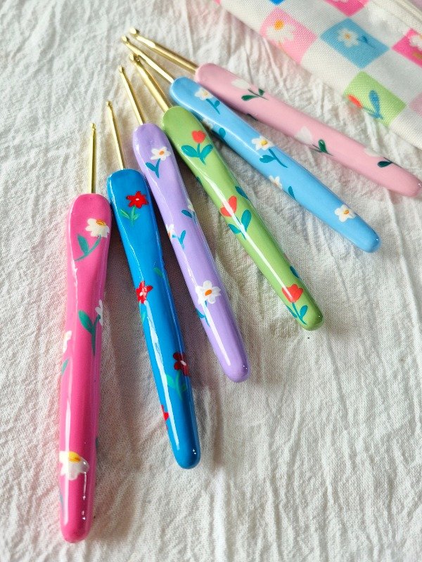Este kit con 6 varitas de crochet únicas, hechas y elegidas especialmente para combinar con su estuche.
