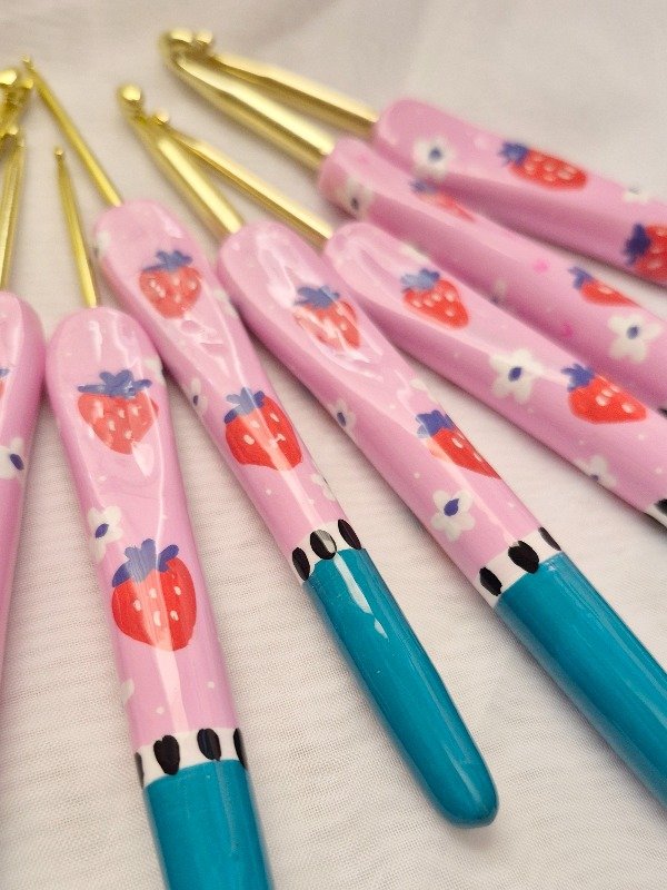 Cada aguja es única, amasada y pintada a mano con amor, y protegida con el mejor barniz súper brillante y resistente. ¡Una compañera fiel para todos tus proyectos!