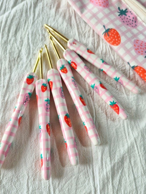Cada aguja es única, amasada y pintada a mano con amor, y protegida con el mejor barniz súper brillante y resistente. ¡Una compañera fiel para todos tus proyectos!